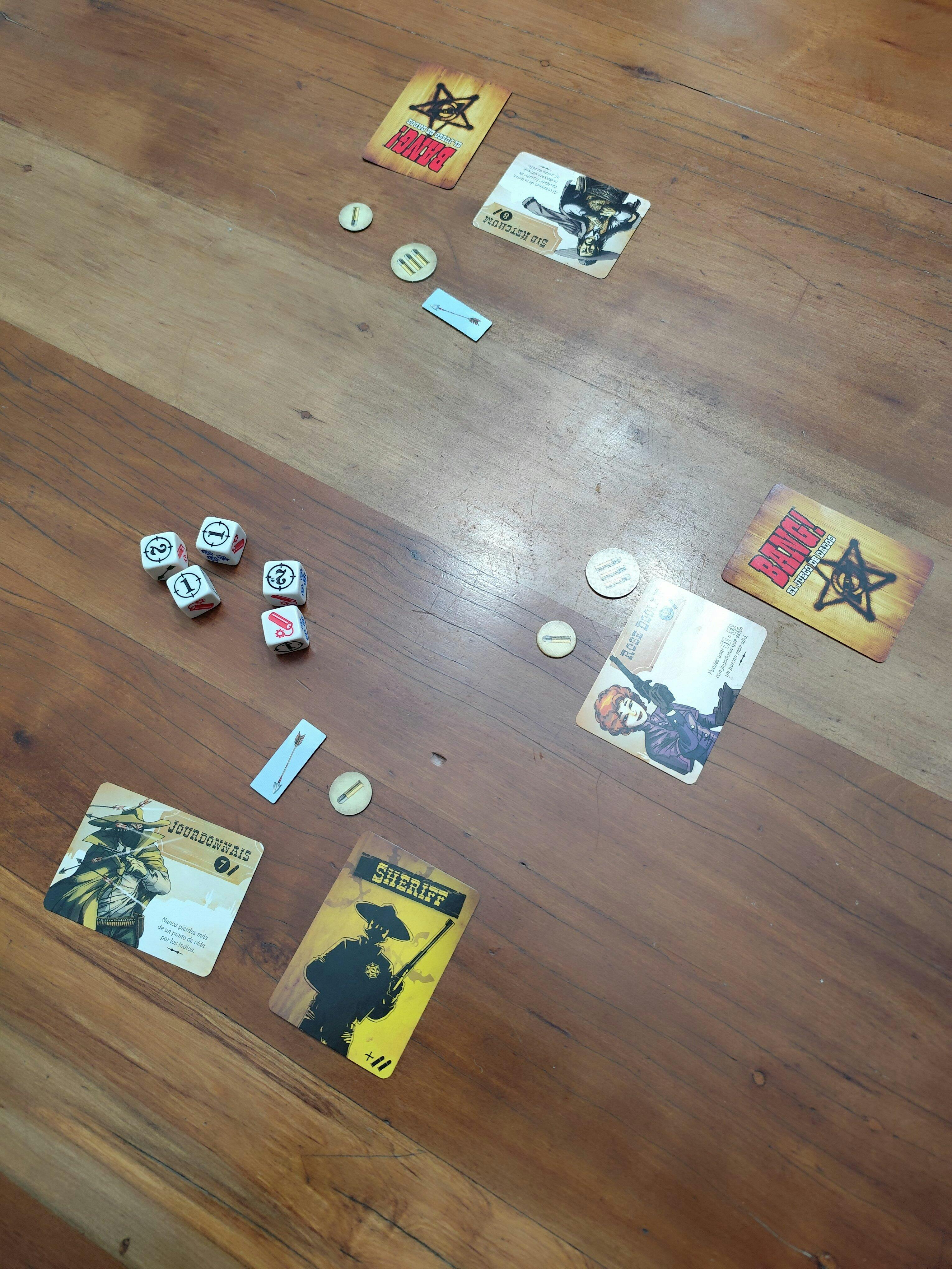 Lleva la emoción del juego de roles ocultos BANG! (juego de cartas) al mundo de los dados con BANG! The Dice Game. Ahora en cada turno tirarás dados, usarás efectos especiales, apuntarás al sheriff o a sus oponentes… y te dispararás a la victoria en minutos.